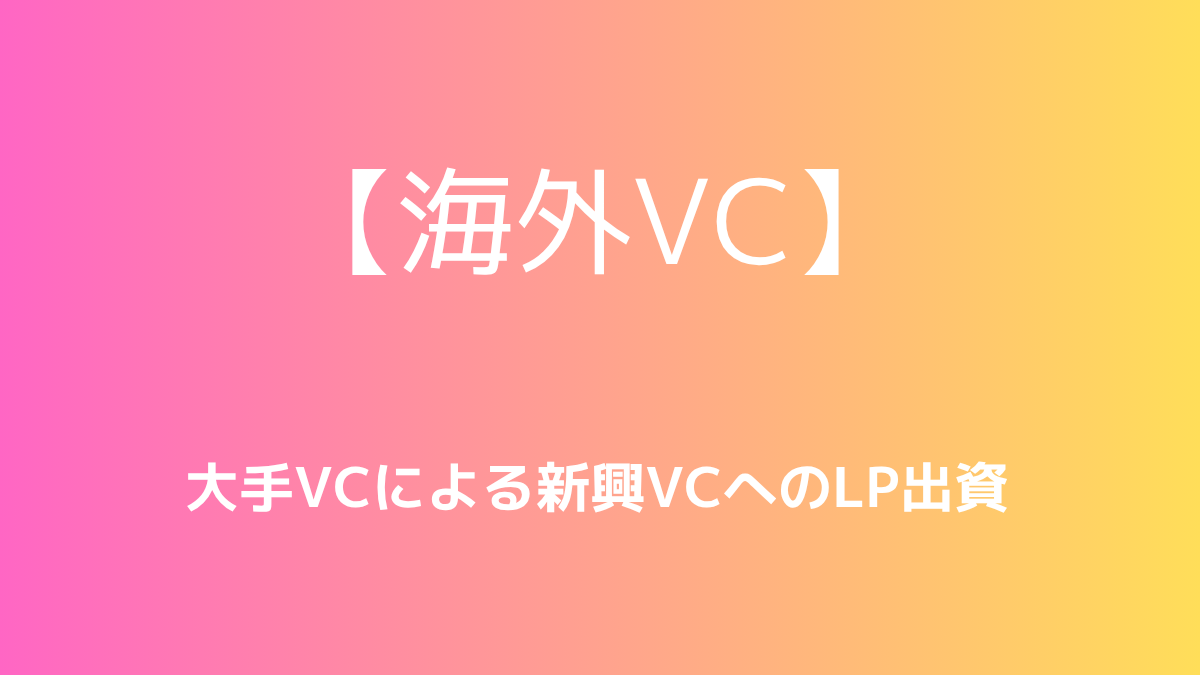 大手VCがLPとして新興VCのファンドに出資をするケースがあります。これは財務リターンを目的とした判断というよりも、自社の投資戦略から慎重に選択したニッチ市場において自社のメインファンドを運用するGPが機関投資家LPのように振る舞うと捉えることができます。典型的なケースとしては、大手VCに所属していた実績のあるパートナーが独立して自分のファンドを立ち上げる場合です。これは一種のスピンアウトファンドと考えることができます。別のケースとしてはスタートアップの創業者あるいは経営幹部が新興VCを立ち上げ、そのファンドに大手VCがLP出資をする場合があります。このような新興VCでは極めて特化した戦略(特定セクター、特定地域など)や差別化ポイントを持ち、独自のディールフローを持つケースが多くなります。大手VCとしては、規模の大きい自社のメインファンドでは運用上近づきにくい新興エコシステムに早期にアクセスする手段の1つと考えられ、新興VCからの定期的なレポートも含めて戦略的知見が獲得でき自社の投資戦略の策定などに活用できます。また、ディールフローという観点からは、新興VCの最優良案件への早期アクセス権を獲得でき、新興VCがシードステージで投資をして、大手VCがシリーズA以降で投資をするというような投資ステージにおけるすみ分けが機能する場合は特に有効であると考えられます。大手VCとしては規模の大きいメインファンドの一部を規模の小さい新興VCのファンドにLP出資することにより、資本を効率的に配分しつつ、新興VCのファンドが投資する優良案件への一種のコールオプションを獲得することにつながります。また、LP出資している新興VCが将来ブランド化した場合は、早期のLPポジションは非常に収益性が高くなる可能性もあります。